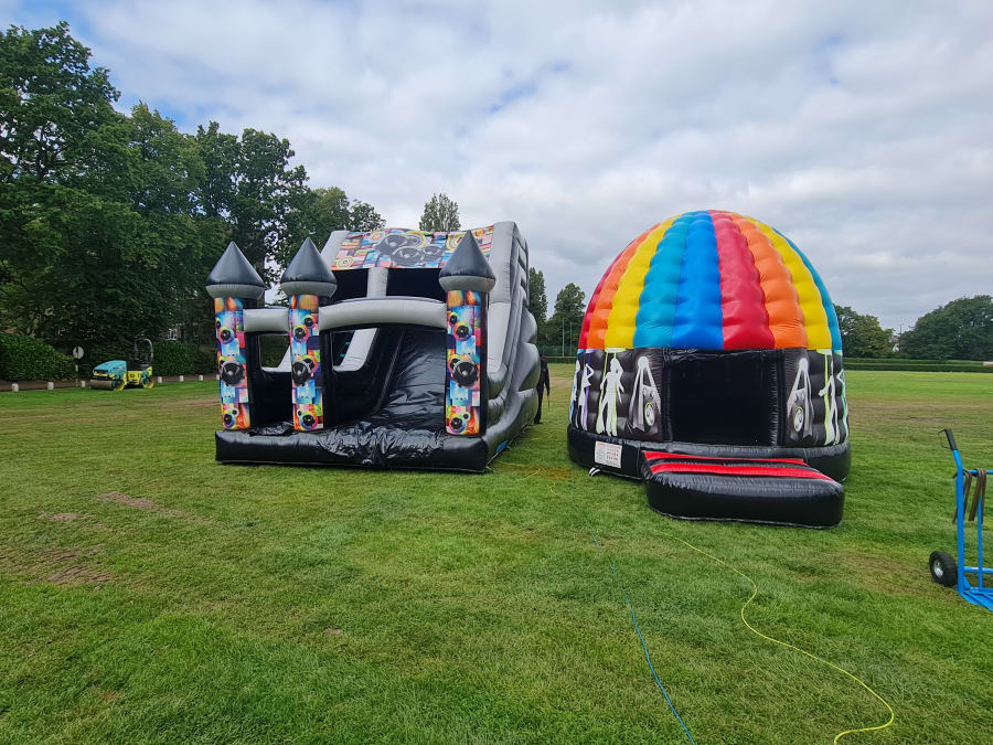 Bouncy castle packages Birmingham presenting a fantastic combination of disco dome with inflatable slides.
