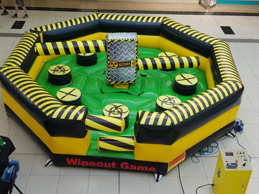 • The inflatable wipeout game requires a space of at least 6m by 6m and also one main power supply.