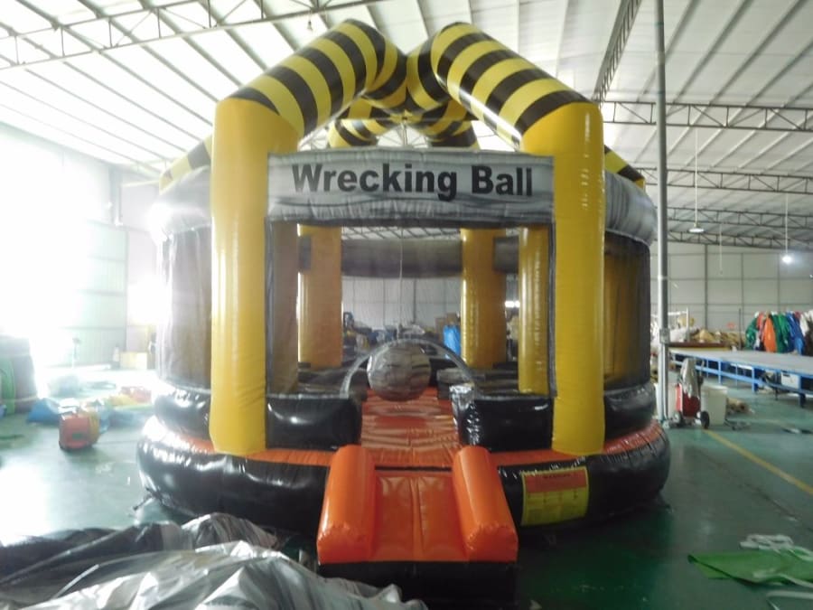 Inflatable wrecking ball game ready to demolish all who stands in its way! inflatable Wrecking Ball or Human Demolition Ball, 4 person podium the aim of the game is to launch the wrecking ball to knock your opponents of their podiums. inflatable wrecking ball game requires balance, precision, strength and cunning to become the king of demolition.