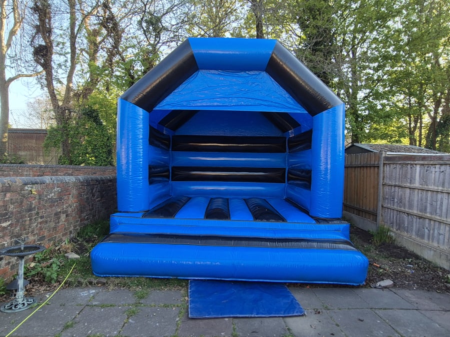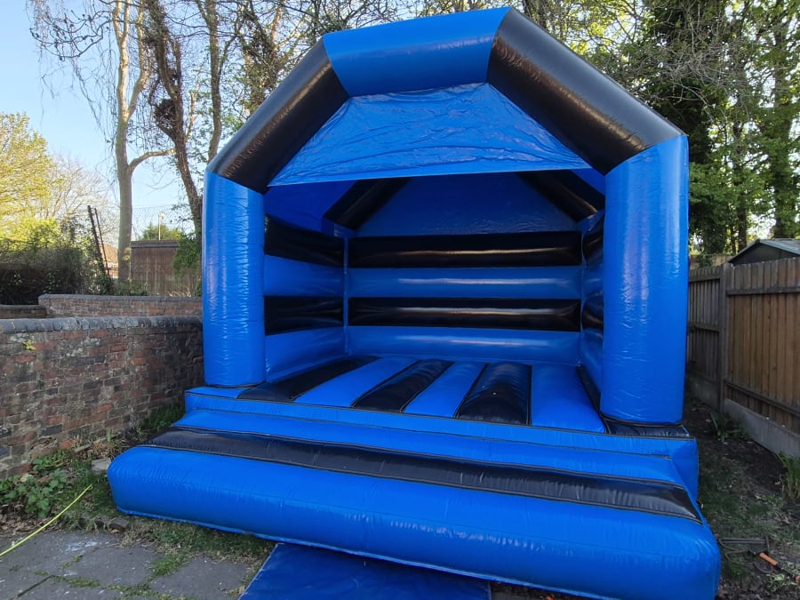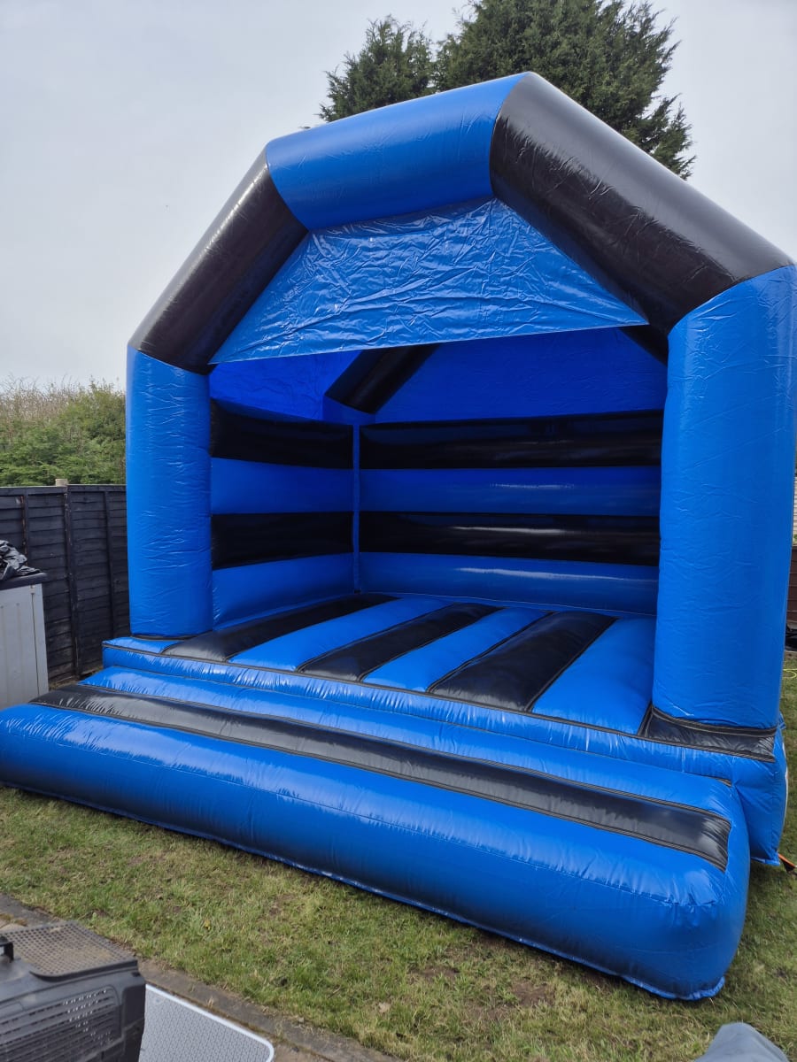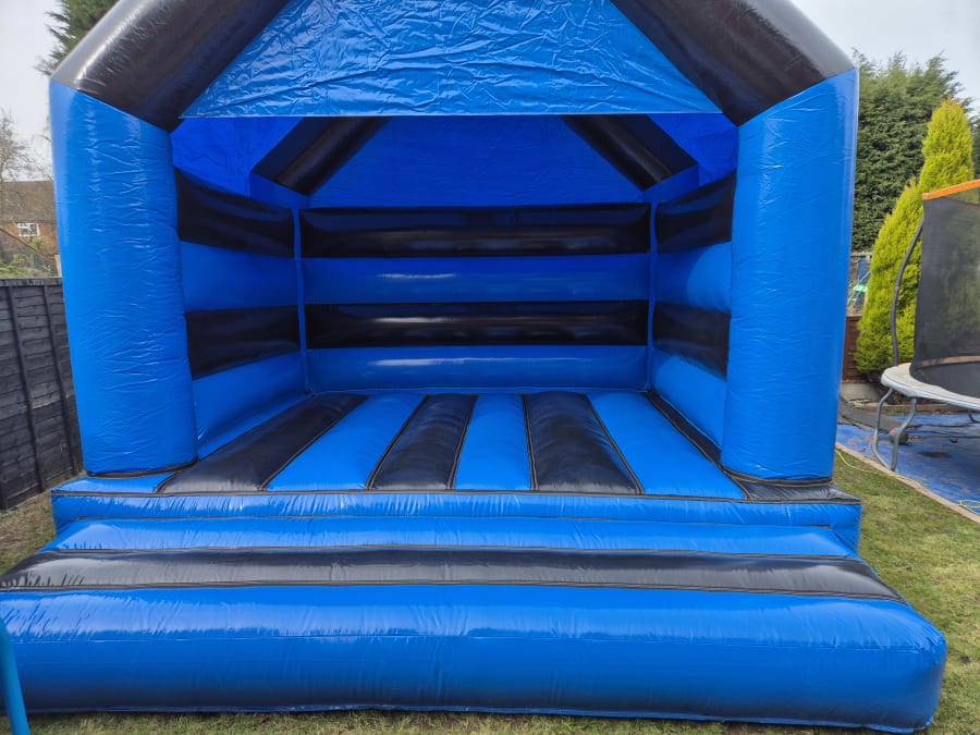 Hire a vibrant blue and black 15ft x 15ft adult bouncy castle in Birmingham, perfect for all ages 5 and above. Ideal for birthdays, weddings, corporate events, and celebrations any time of the year, this spacious bouncy castle guarantees endless fun and excitement. Book now for unforgettable entertainment, rain or shine!