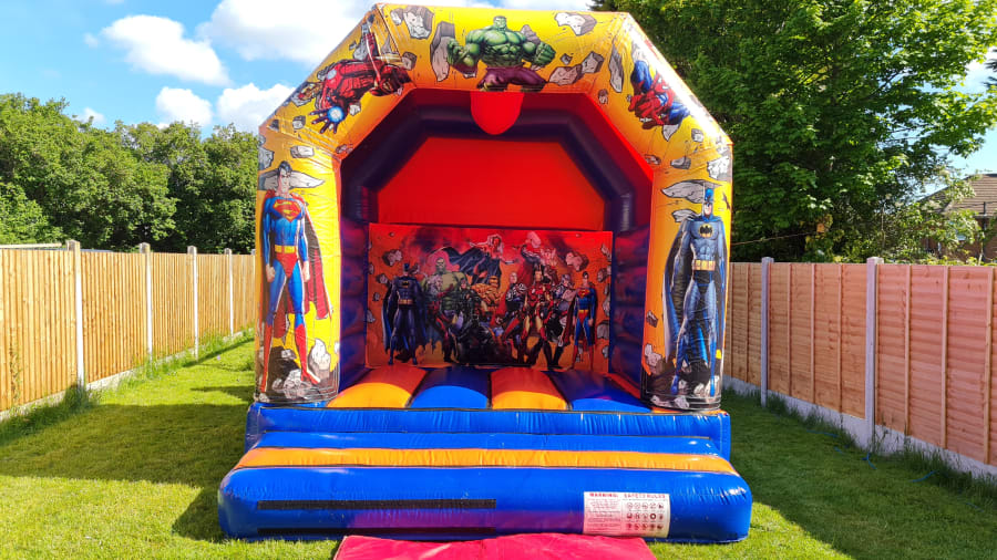 All your favourite heros joining together to make one fantastically entertaining bouncy castle. ideal for almost every garden party, social event or birthday party, this 12ft x12ft castle is great for children younger than 15.