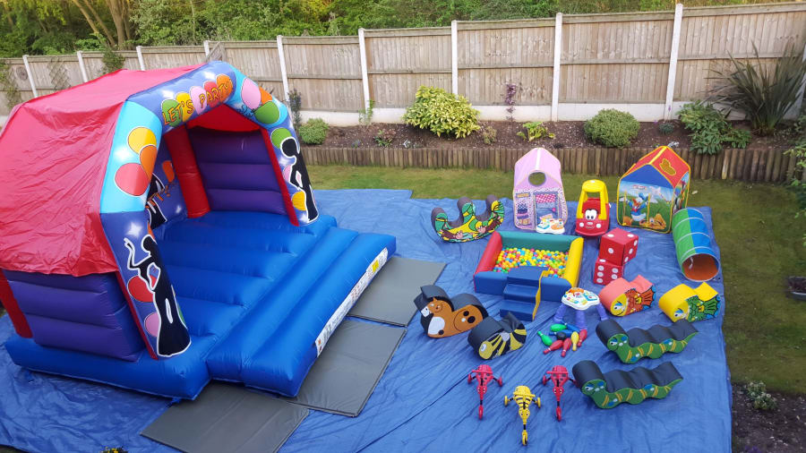 Our Themed Lets Party 12 x 12 inflatable Castle is suitable for under 12 years and when accompanied with our Super soft soft play package, offers a formidable and value for money combination with a variety in fun and entertainment which will keep a range of ages playing blissfully for hours .