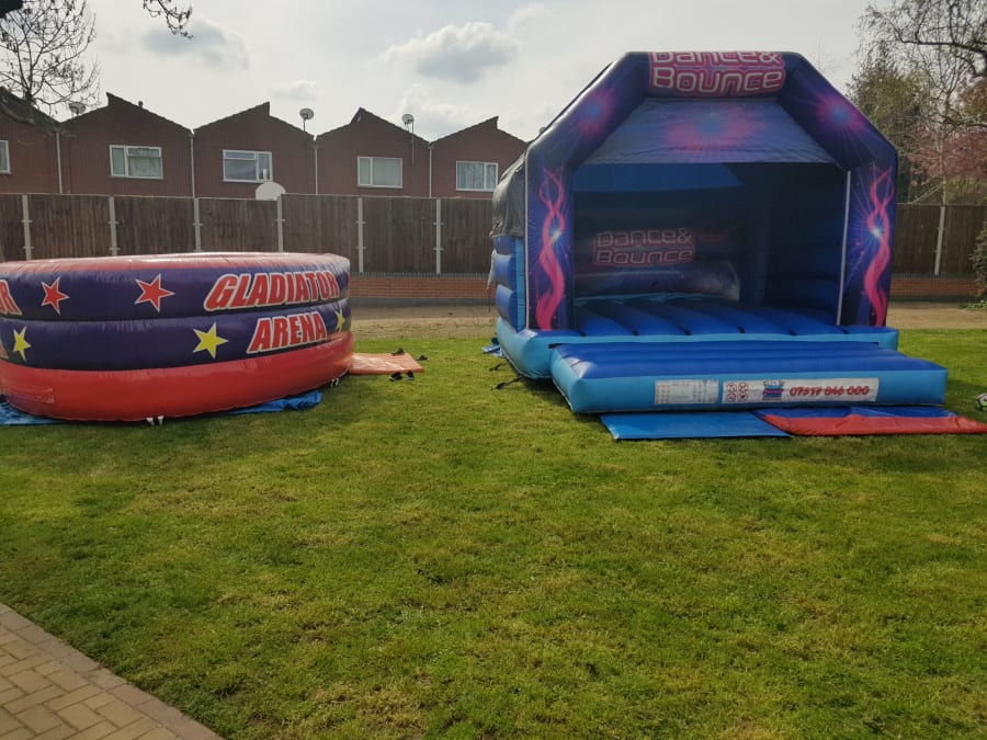 Gladiator duel suitable for all ages 6 and up. This adult castle and gladiator will is a great pair of inflatables and promises is to keep the party going.