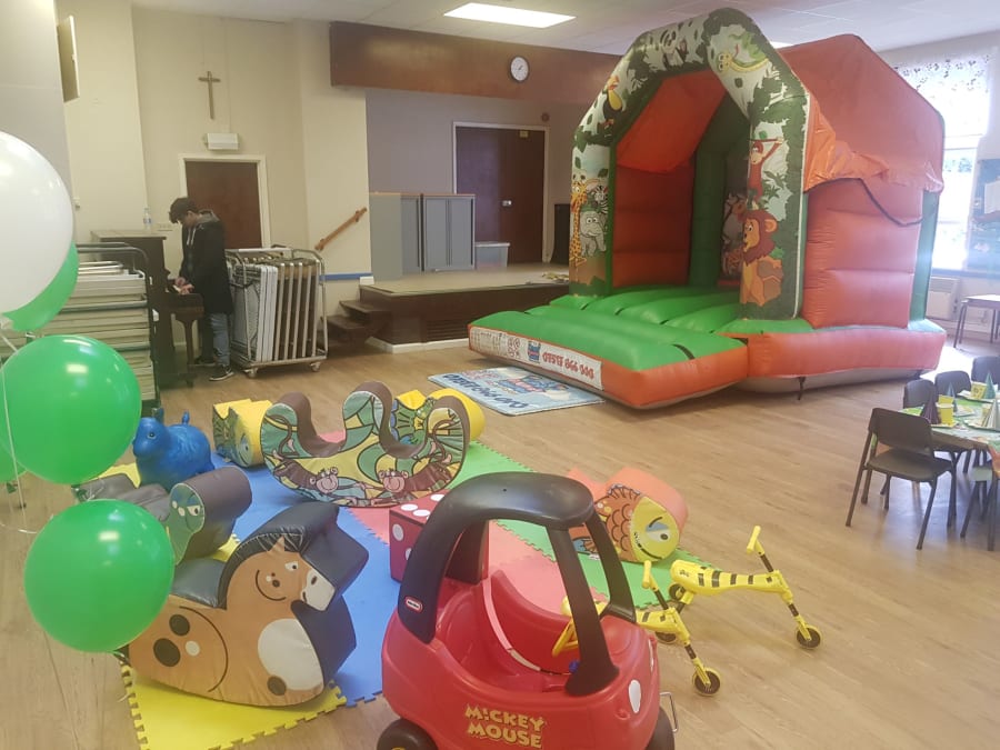 Jungle package comes with a vibrant 10ft high, 10 ft wide, 10ft long Jungle bouncy castle, paired with 10 soft play toys (ball pit not included).